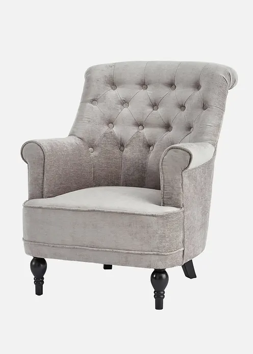 Dieser schöne Sessel ist ein wahrer Blickfang für jeden Wohnraum: Seine aufwendige Verarbeitung mit Polsterknöpfen und seine ansprechende Farbe machen ihn zu einem einzigartigen Möbelstück. Die Schaumstoffpolsterung und der Samtbezug sorgen für einen angenehmen Sitzkomfort. Der Polstersessel strahlt Gemütlichkeit aus und macht sich besonders gut im Wohn- oder Schlafzimmer. Die gedrechselten Vorderbeine des Sessels verleihen ihm einen barocken Touch. Dieser schöne Sessel ist ideal für alle, die ihre vier Wände mit viel Liebe einrichten.