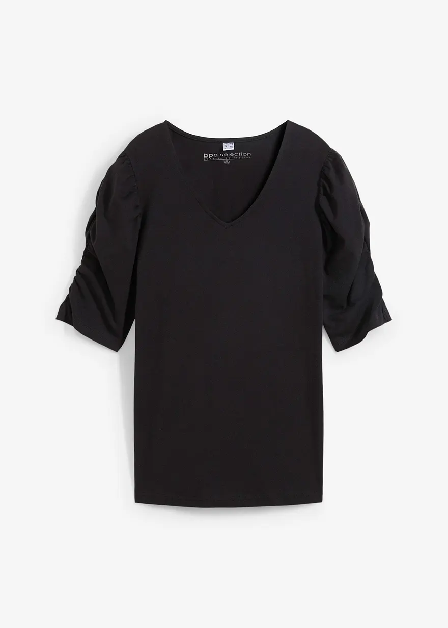 Shirt mit Puffärmeln in schwarz von vorne - bonprix