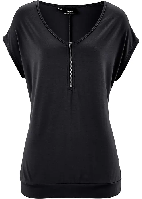 Locker sitzendes T-Shirt mit Reißverschluss am Ausschnitt