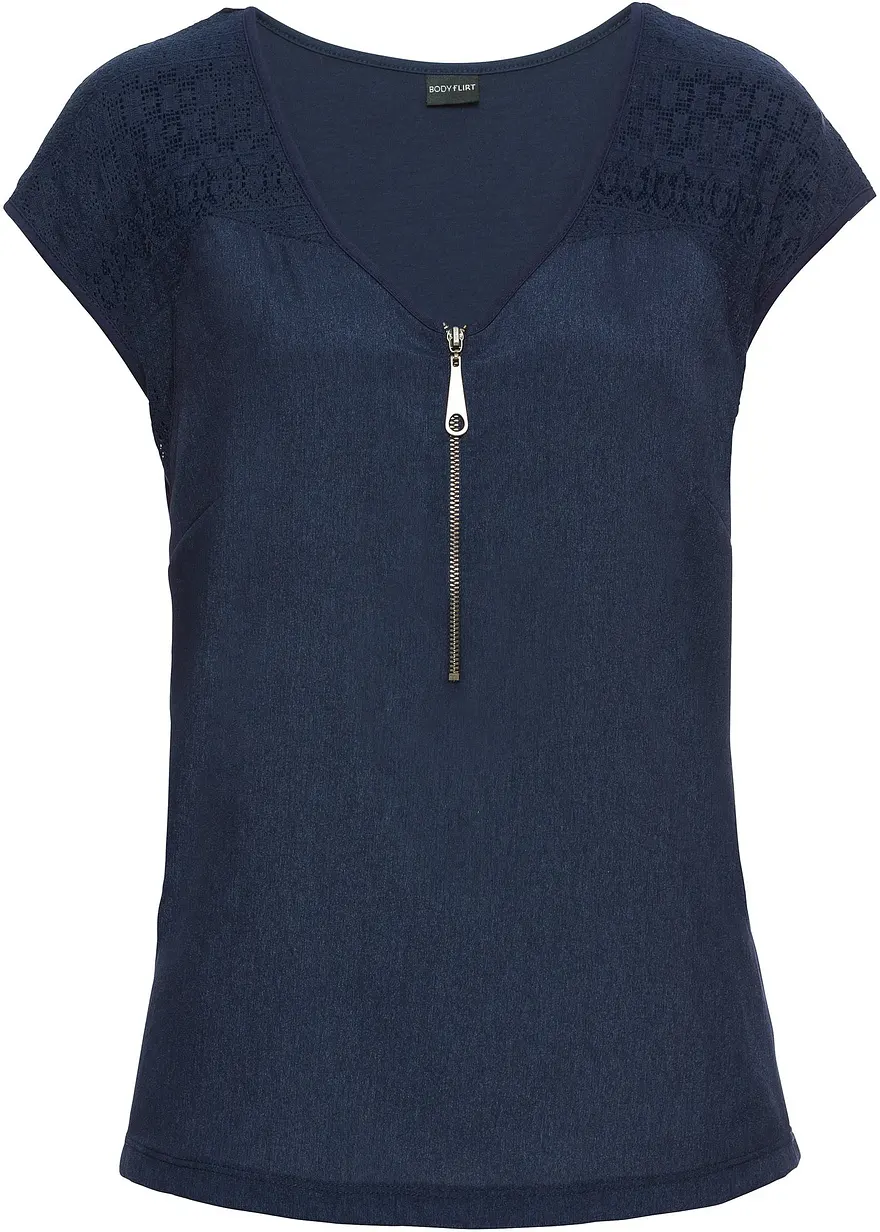 Originelles Shirt mit Reißverschluss und hübschen Spitzeneinsätzen