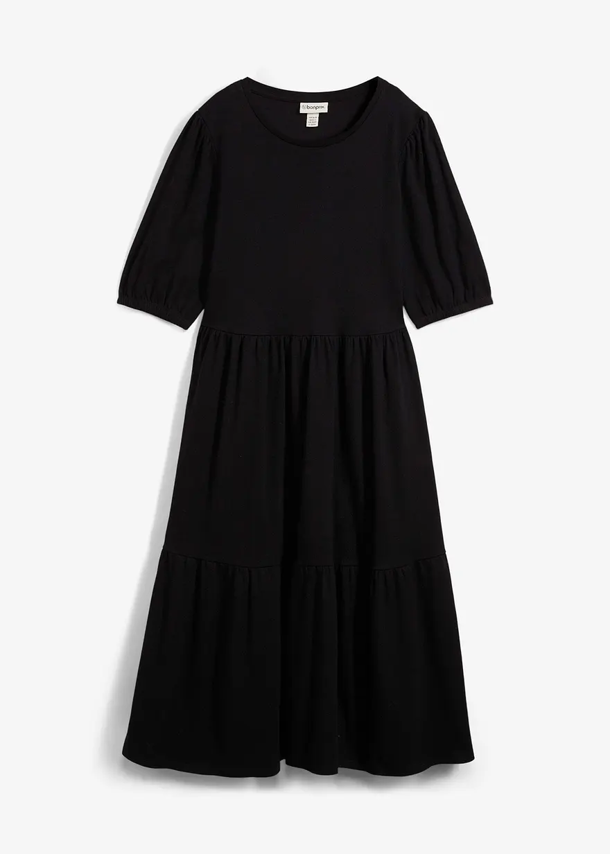 Midi-Kleid mit Elastik-Einsatz am Ärmel