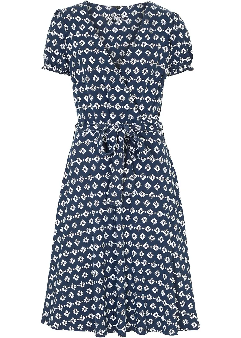 Figurumspielendes Kleid mit Allover-Print und Bindegürtel