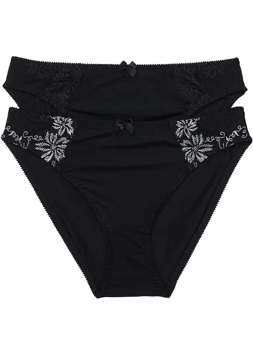 Slip mit zarter Stickerei (2er Pack) in schwarz - bonprix