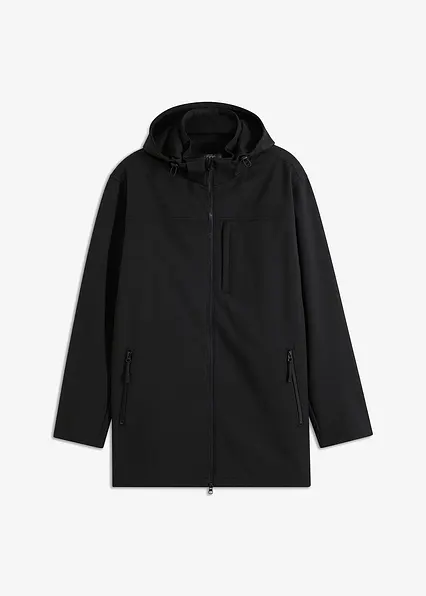 Modische, lange Softshelljacke mit abnehmbarer Kapuze