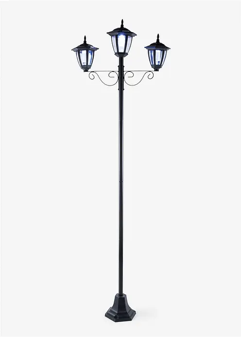 Optisch erinnert die Solar-Gartenleuchte an traditionell gestaltete Parkbeleuchtungen mit Gasflamme. Sie erweist sich als toller Blickfang für den Außenbereich. Bei einbrechender Dämmerung beginnt die Lampe von selbst zu leuchten. Ausgestattet mit drei weißen LEDs sorgt sie für eine angenehme Lichtstimmung. Im Set sind sowohl der benötigte Mignon Akku (AA, 1.2 V, 300 mA) als auch die für eine Bodenverankerung gedachten Heringe enthalten. Die Solar-Gartenleuchte setzt einen nostalgischen Akzent im Garten oder auf der Terrasse.