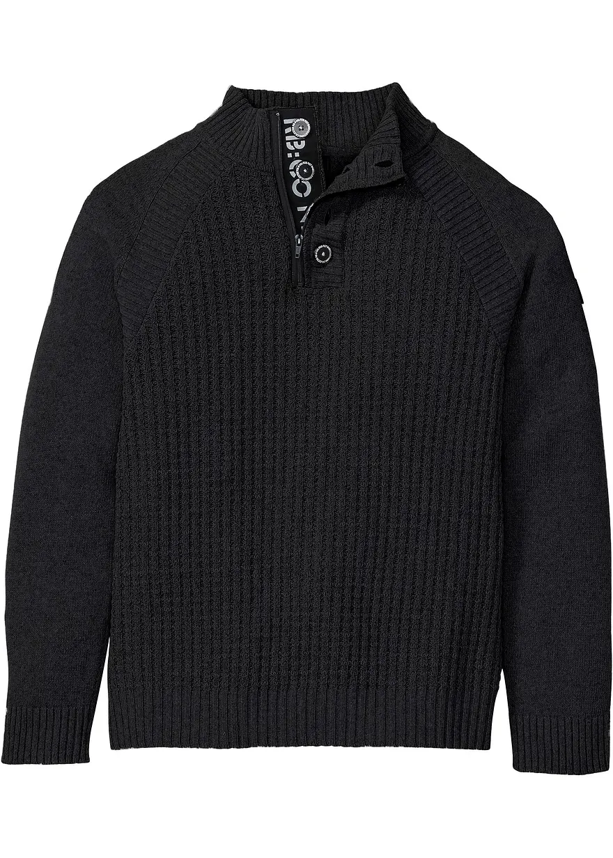 Strukturierter-Stehkragenpullover mit recycelter Baumwolle