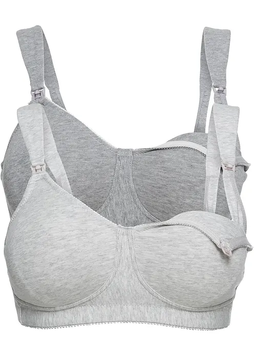 Aus weicher Baumwollqualität gefertigt liegt dieser Still-BH besonders angenehm auf der Haut. Die nahtlos vorgeformten Cups sowie leicht gepolsterte, breite Träger bieten einen angenehmen Tragekomfort. Der Klickverschluss am Cup lässt sich leicht öffnen.Im günstigen Pack sind zwei Still-BHs aus der Kollektion Nice Size enthalten. Als besonderes Detail hat der BH einen verlängerten Verschluss im Rücken. So wird er den Bedürfnissen in Schwangerschaft und Stillzeit besonders gerecht und lässt sich perfekt an die Unterbrustweite anpassen.Während der Schwangerschaft verändert sich der Körper. Daher empfehlen wir Ihnen, dass Sie sich neu ausmessen. Damit Sie Ihre korrekte Größe ermitteln können