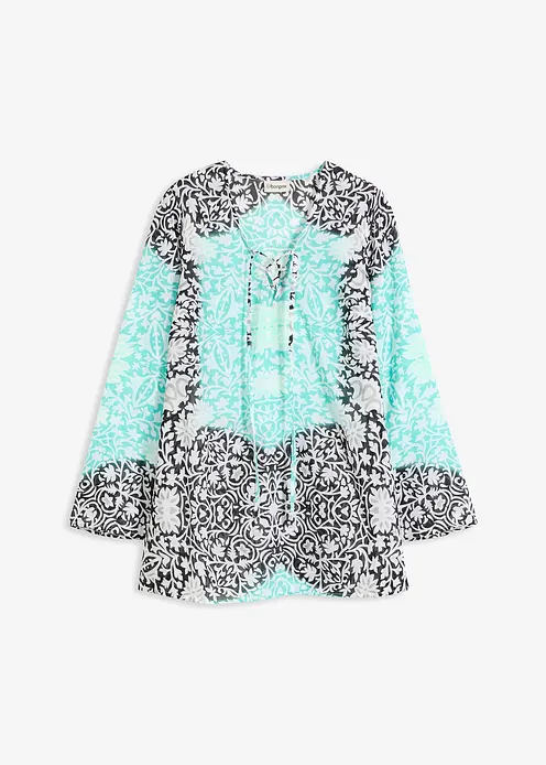 Mit dieser Tunika sind Sie am Strand im Nu stilvoll gekleidet. Als modische Ergänzung zur Bademode zeigt sich die Strandtunika mit einem tiefen Ausschnitt, der geschnürt werden kann. Die langen Ärmel sind ausgestellt. Das Modell hat seitliche Schlitze und überzeugt mit einem weichen Griff.Durch die transparente Optik lässt die Tunika von bpc selection einen darunter getragenen Badeanzug oder Bikini durchscheinen.