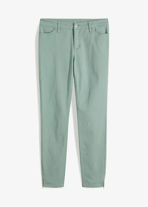 Die mit vier Taschen versehene, schmal geschnittene Stretchhose überzeugt mit ihrem Kombinationsfaktor. Kleine Reißverschlüsse am Beinende setzen einen modischen Akzent. Das ansprechende Modell von BODYFLIRT bietet die Basis für abwechslungsreiche Looks.Ein schickes Outfit gelingt mit Bluse, Blazer und Pumps. Eine lässige Note erhält die Stretchhose mit einem locker fallenden Strickpullover in Oversize und Metallic-Boots. Für einen verspielten Charme sorgt eine bunt gemusterte Tunikabluse.
