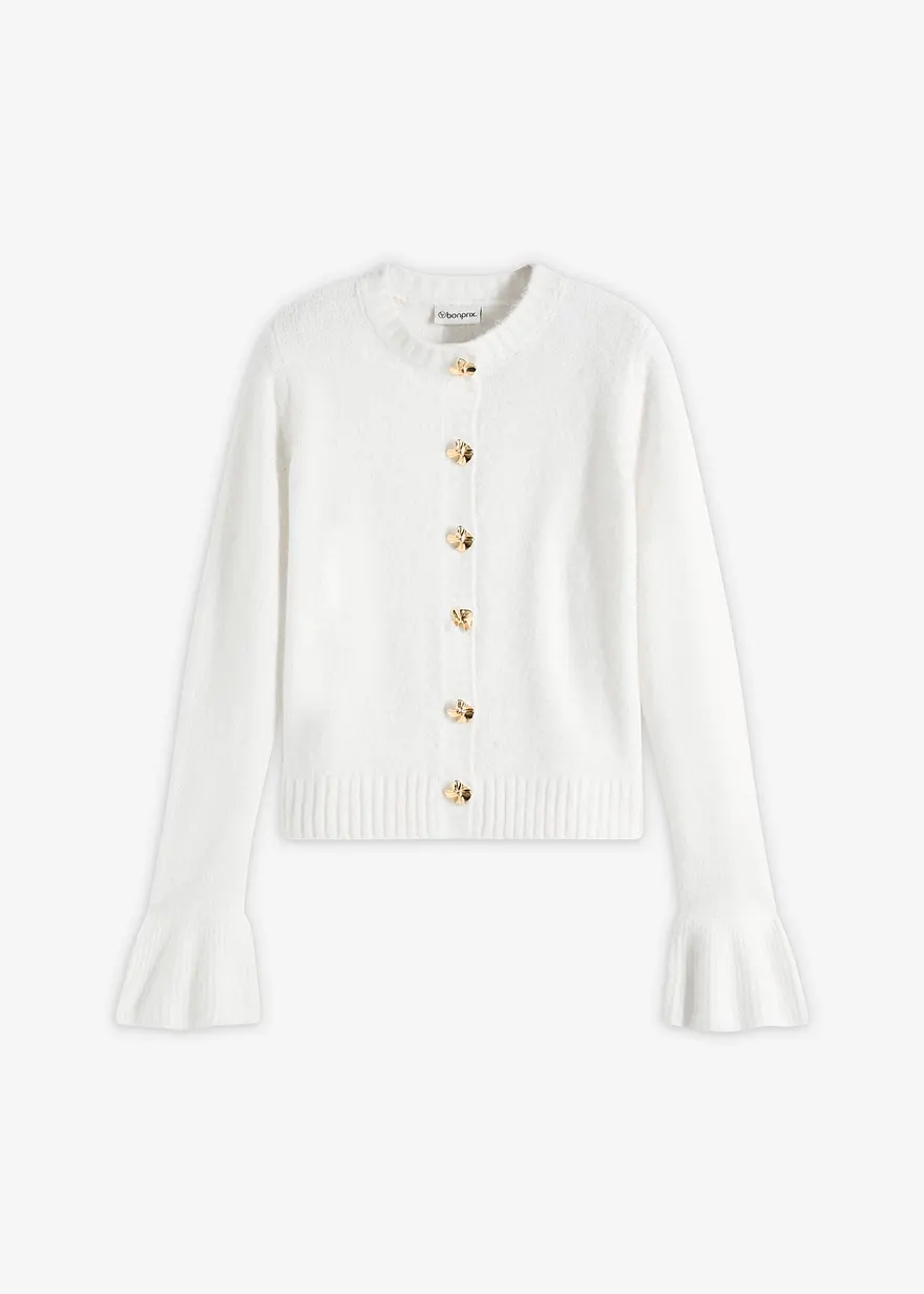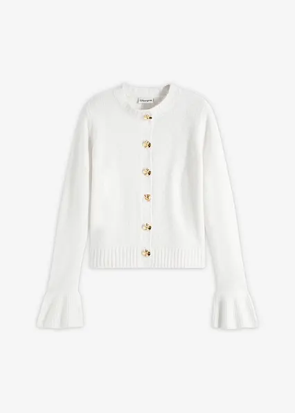 feminine Strickhacke mit dekorativen Knöpfen und Volants am Ärmelsaum