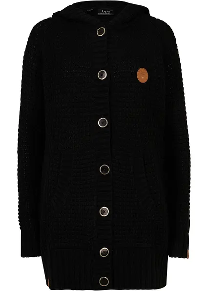 Kuscheliger Longcardigan mit Känguru-Taschen und Lederimitat-Detail