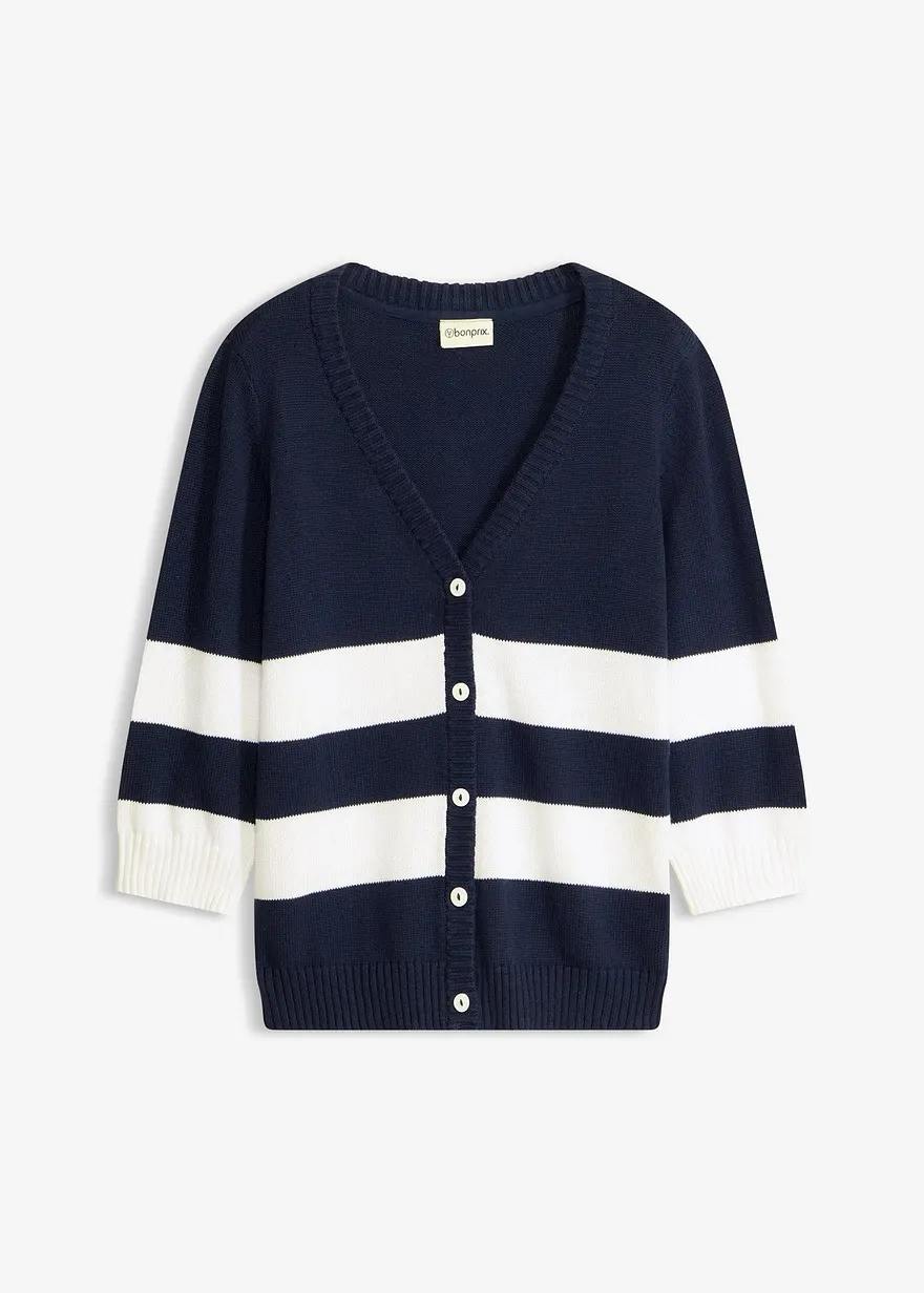 Baumwollstrickjacke mit Streifen
