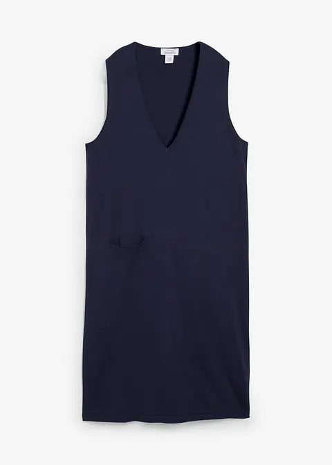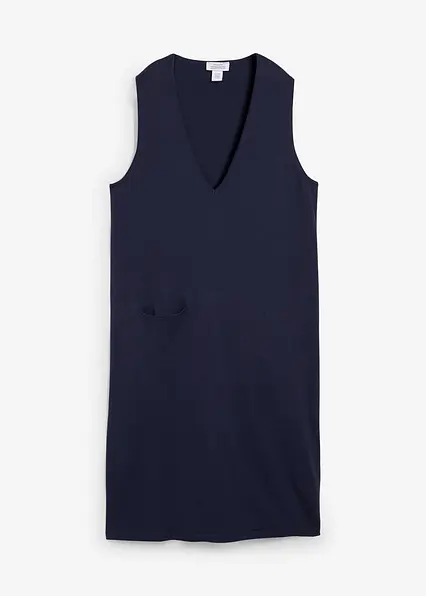 Ärmelloses Maxi-Strickkleid mit V-Ausschnitt aus reiner Baumwolle