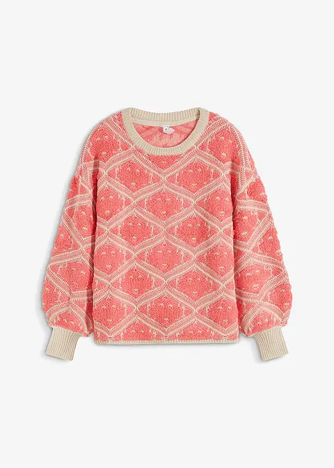 Modischer Jacquard Pullover mit Rundhalsausschnitt