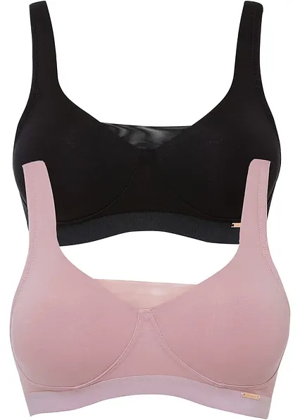 Der bügellose BH aus weicher Bio-Baumwolle wird im praktischen Doppelpack geliefert. Die breiten Träger runden das komfortable Design ab.