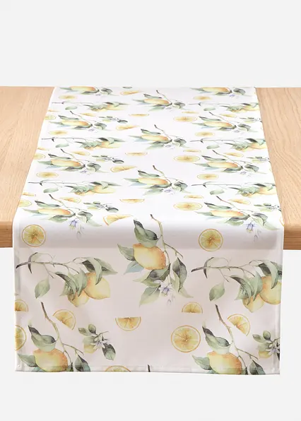Dieser elegante Tischläufer schmückt Deine Tafel auf besondere Art. Der Tischläufer hat einen Zitronen Druck.