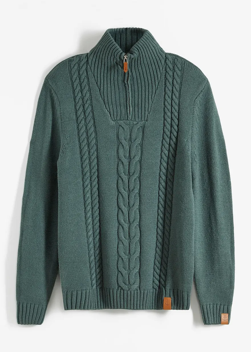 Toller Pullover mit Zopfmuster und schönen Kunstleder-Details, maschinenwaschbar