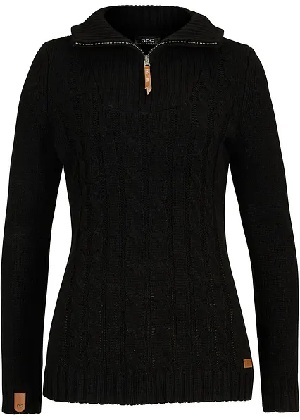 Gestrickter Troyer-Pullover mit schönem Zopfmuster und Leder-Details