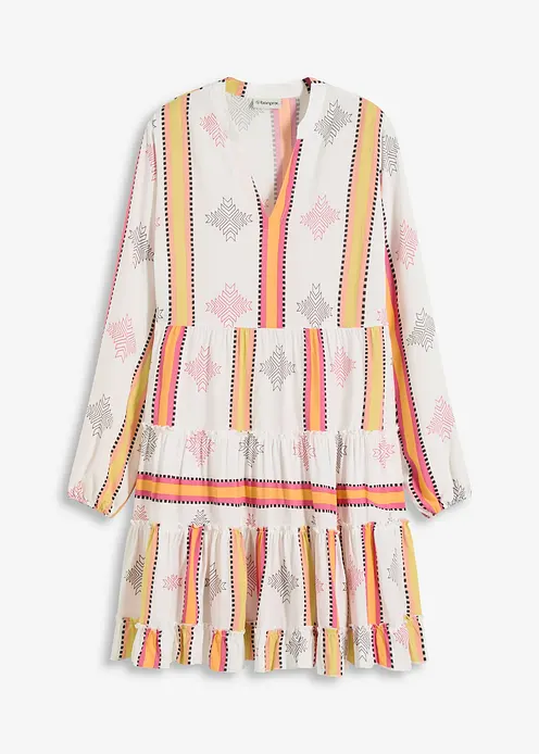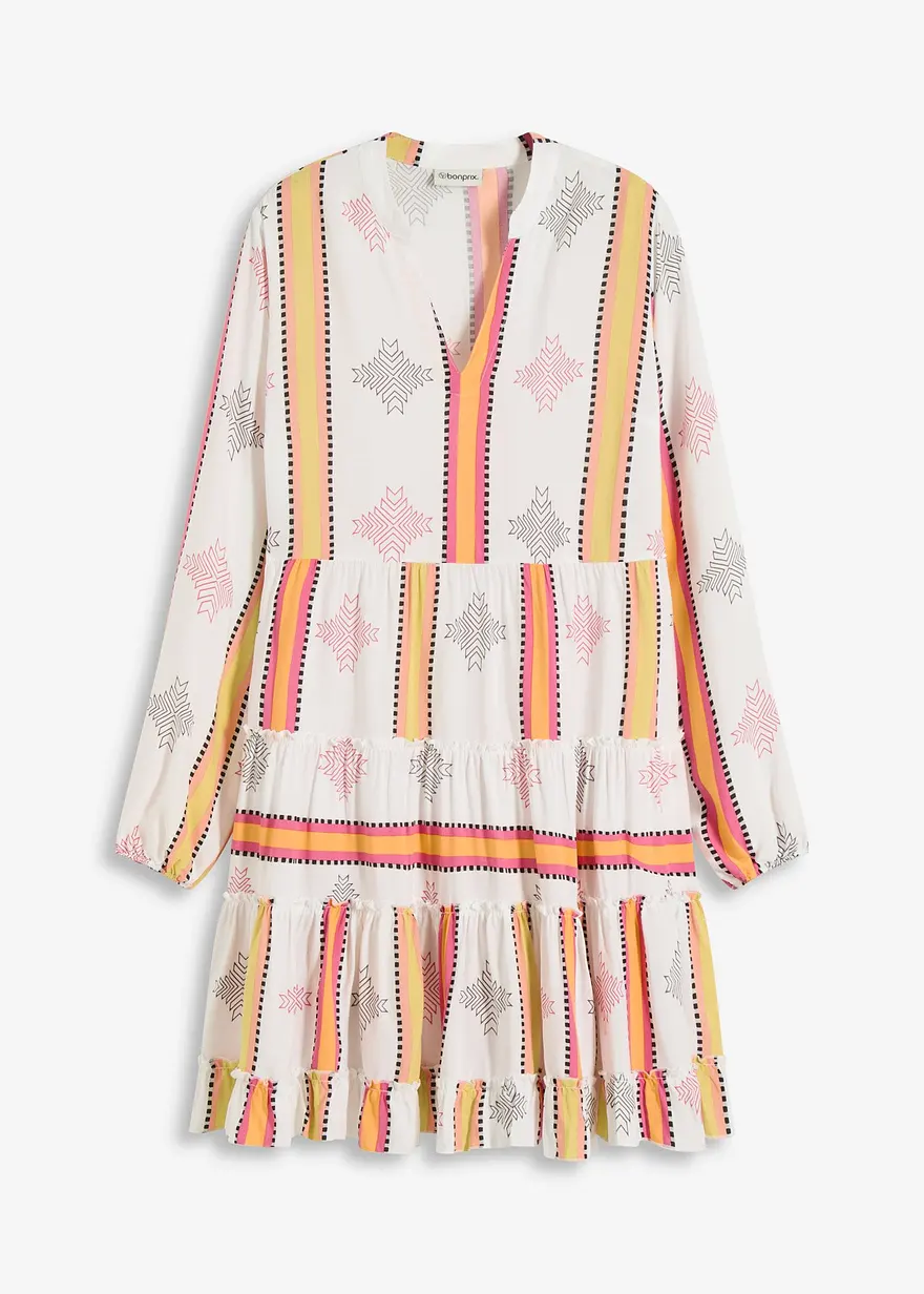 sommerliches Tunika-Kleid aus fließender Viskose mit Stufenrock und Volants am Ärmelsaum