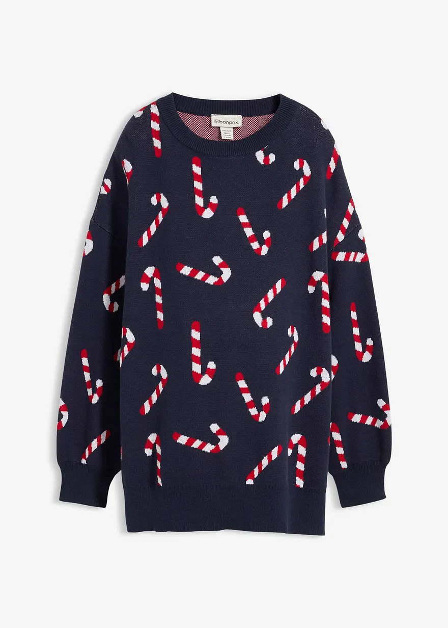 Dieser Umstandspullover mit fröhlichem Zuckerstangen-Print bringt festliche Stimmung in deine Garderobe. Der Regular Fit und die seitlichen Stillschlitze bieten Komfort und Funktion während der Schwangerschaft und Stillzeit. Mit Rundhalsausschnitt, langen Ärmeln und geradem Saum ist er ein gemütlicher Begleiter für die Winterzeit.