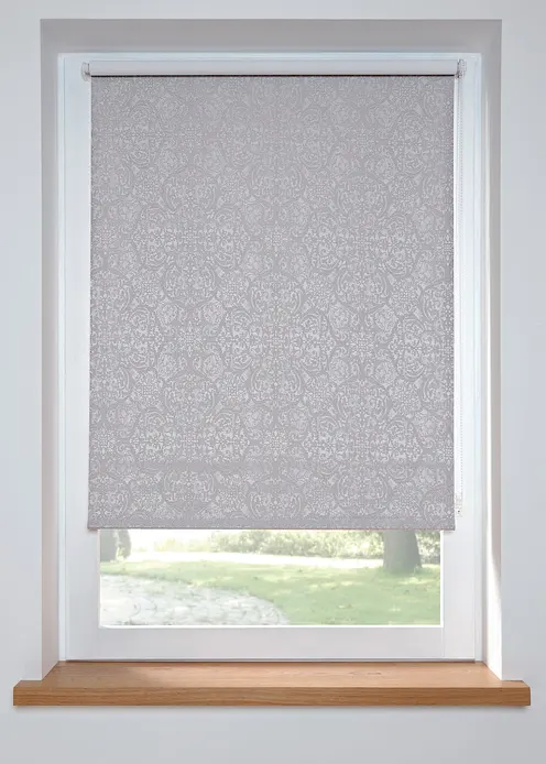 Hochwertiges Jacquard-Rollo mit verdunkelnder Funktion. Das Ornament-Muster macht einen edlen Eindruck.