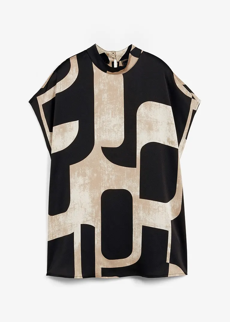 Tunikabluse aus Satin in schwarz von vorne - bonprix