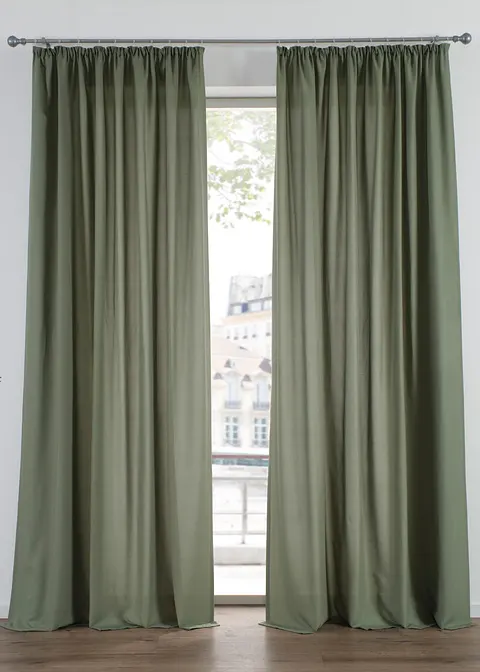 Die einfarbigen Microfaser Vorhänge mit recyceltem Polyester-Anteil sind die richtige Wahl, wenn Du es schlicht und zeitlos magst. Dank ihrer dezenten Optik sind sie universell im gesamten Wohnbereich einsetzbar. Die blickdichte Qualität der beiden Vorhänge lässt genug Licht herein, damit der Wohnraum hell und freundlich bleibt. Darüber hinaus sind die Vorhänge in vielen attraktiven Farben erhältlich. Frei hängend als passender Rahmen für Fensterfronten. Die Lieferung erfolgt im günstigen 2er-Pack, d.h. Du erhältst zwei Vorhänge. Durch die Art der Verpackung entstehen Falten. Bitte bei Bedarf vor dem Aufhängen bügeln.