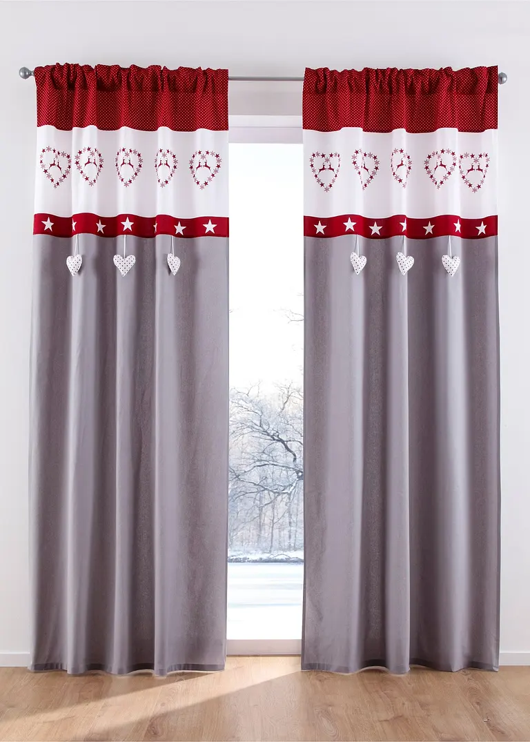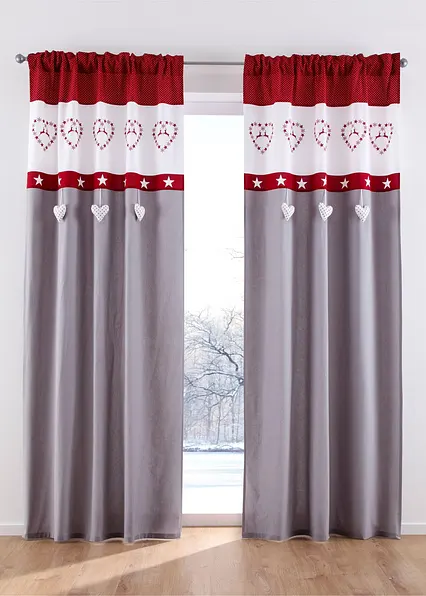 Weihnachtlicher Vorhang mit 3D-Herzchen