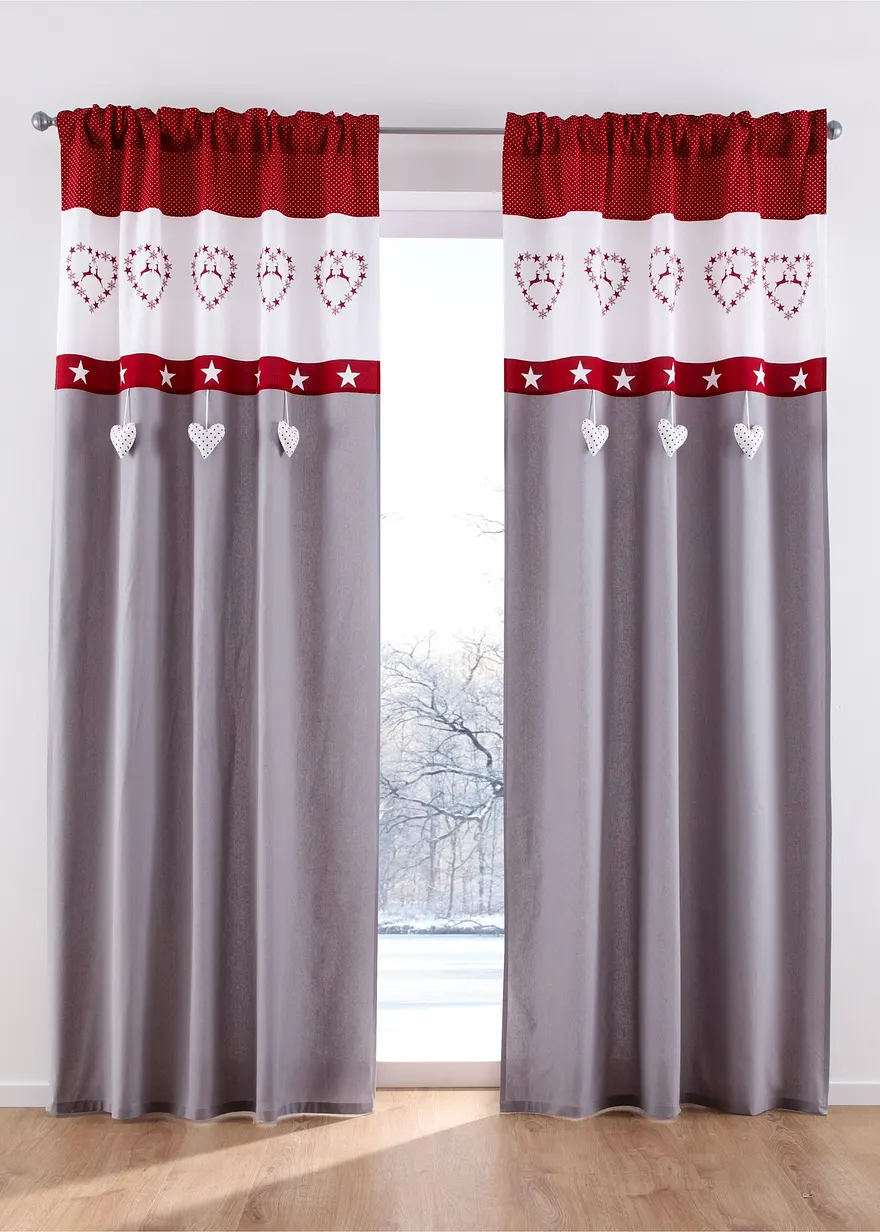 Weihnachtlicher Vorhang mit auffälligen 3D-Herzchen und modernem Druck auf reiner Bio-Baumwolle.