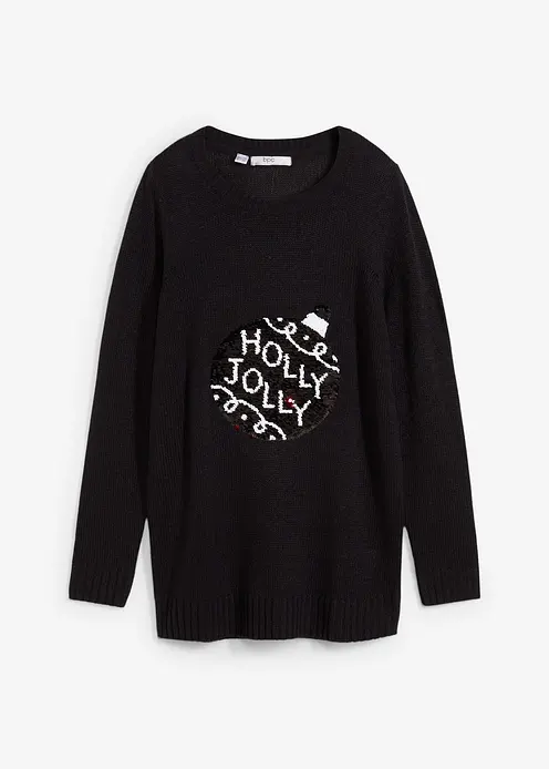 Gemütlich geschnittener Weihnachtspullover mit Rundhalsausschnitt und Wendepailletten