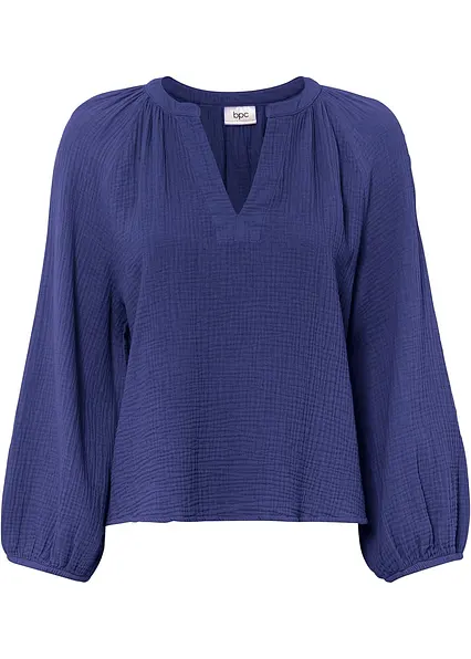Sommerliche Musselin-Bluse mit 3/4 Arm und V-Ausschnitt