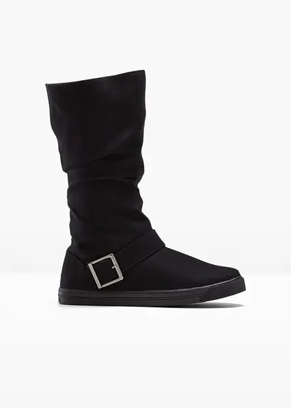 Aus einem Lederimitat mit Warmfutter und einer dekorativen Schnalle.